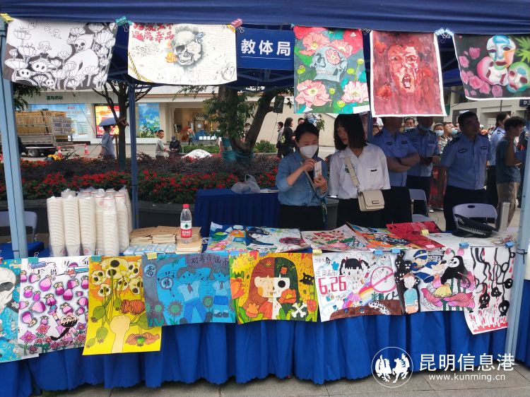 昆明信息港讯 记者姚仲恒 6月26日上午,由昆明市禁毒委主办、五华区禁毒委协办的2022年“6.26”国际禁毒日现场宣传活动在南屏步行街广场举行。