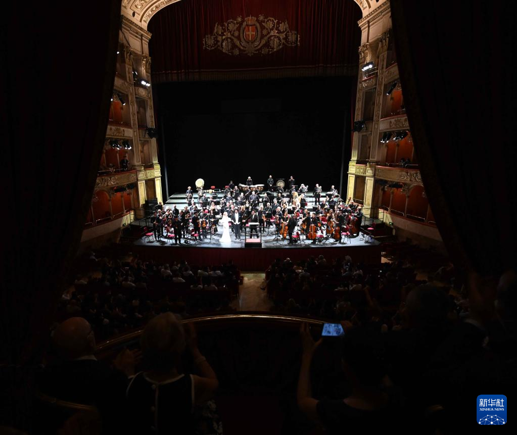 这是6月25日在意大利罗马歌剧院拍摄的“中华风韵”交响音乐会现场。新华社发(阿尔贝托·林格利亚摄)