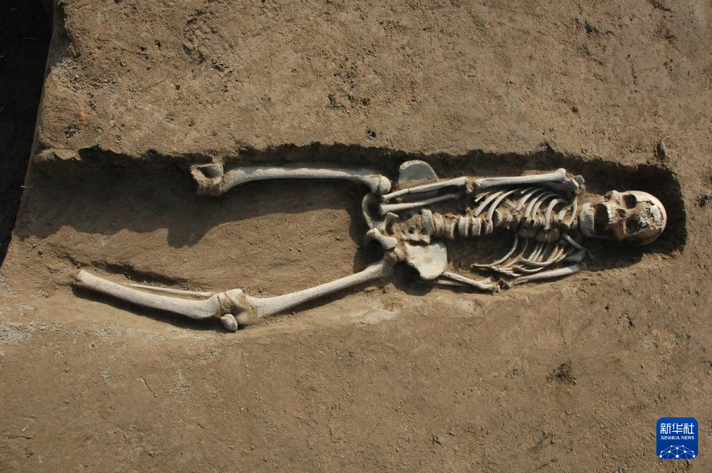 这是瓦店遗址大型祭祀遗迹中的人牲(资料照片)。新华社发(河南省文物考古研究院供图)