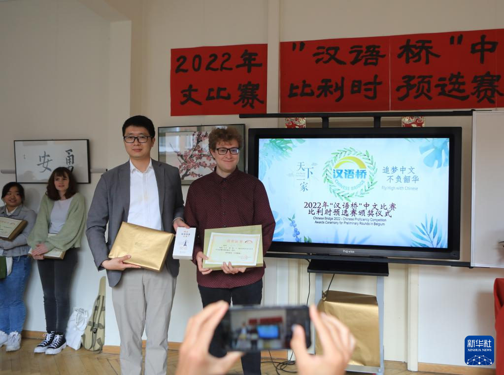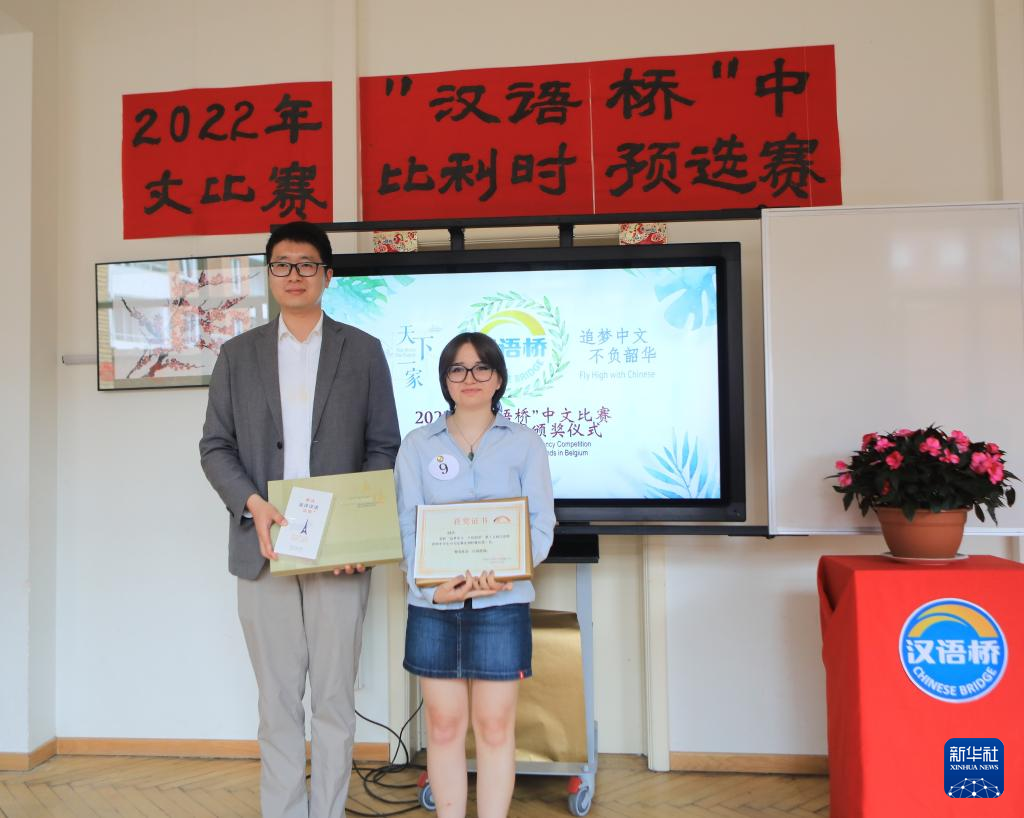 新华社布鲁塞尔6月26日电(记者潘革平)第21届“汉语桥”世界大学生中文比赛和第15届“汉语桥”世界中学生中文比赛比利时预赛26日在布鲁塞尔孔子学院举行。经过激烈角逐,来自蒙斯大学翻译学院的马蒂亚斯·皮尔和列日孔子学院的塞费里亚季斯·玛丽分别获得大学生组和中学生组第一名,将代表比利时参加“汉语桥”全球总决赛。