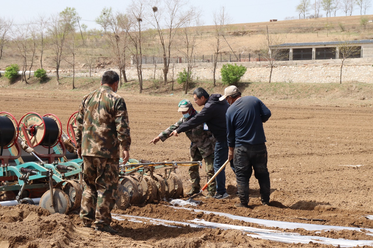 科研人员孟祥波现场指导花生地膜覆盖机械播种。义县宣传部供图