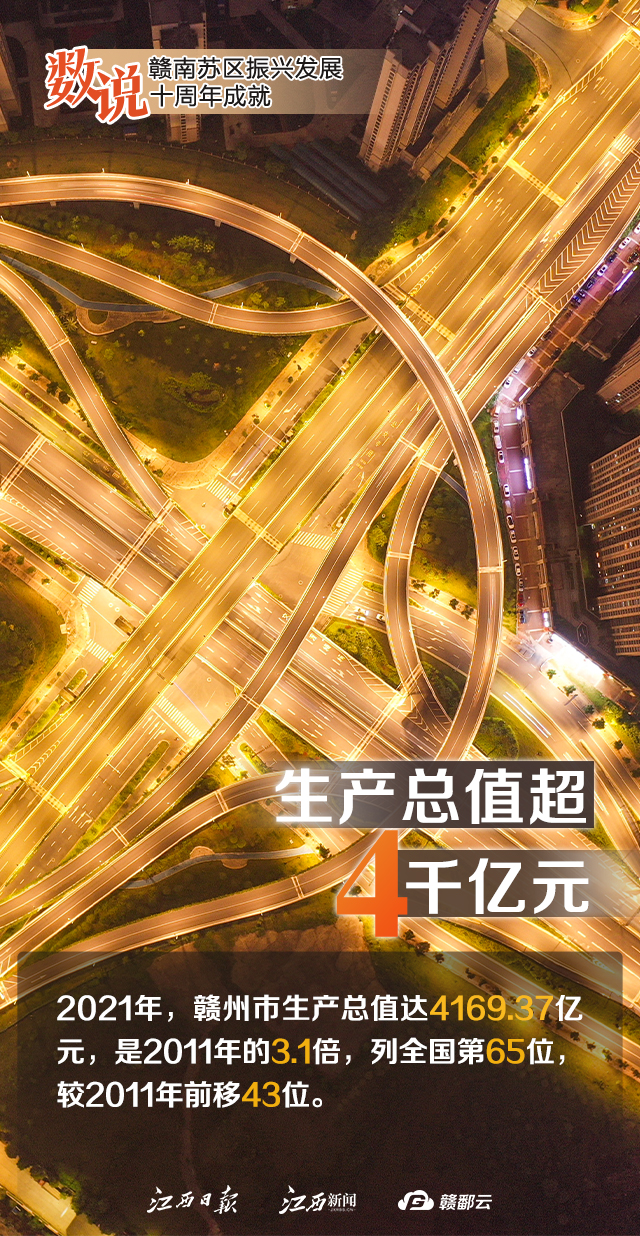 2012年6月28日,国务院出台支持赣南等原中央苏区振兴发展的若干意见,开启了赣南苏区振兴发展的新纪元。十年来,赣南苏区振兴发展如何?赣州市发生了哪些翻天覆地的变化?一组海报,“数”说振兴发展十年新成就!