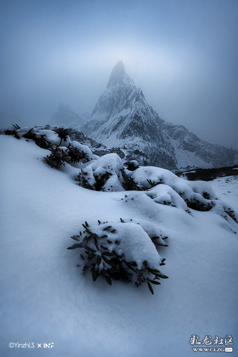 南极洛的主峰,大雪覆盖了杜鹃树林,一切显得寂静而神秘。