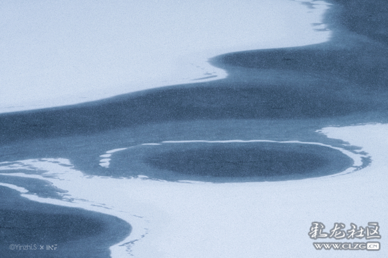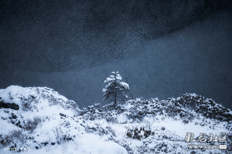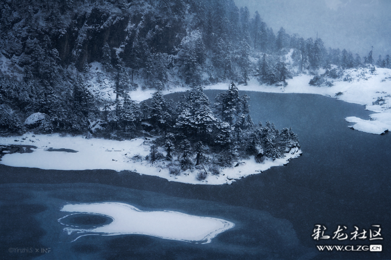 冰冻的湖泊与树林,只剩下蓝色和冷。