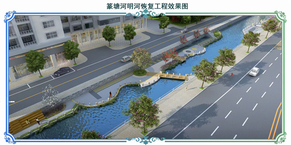 原篆塘河是位于弥勒寺车站拆迁区域房屋地坪之下的暗河,因弥勒寺地铁站建设的需要,2017年对原篆塘河实施了导流迁改,采用导流箱涵将河道迁改至现状西昌路西侧非机动车道下,待车站施工完成之后再对篆塘河进行永久明河原位恢复,篆塘河恢复工程起点为金碧路与西昌路的交叉口(大观河分洪闸),止点为篆塘公园一侧的篆塘桥,恢复河道长度为780米及河道两侧的景观、亮化工程,恢复提升篆塘路约900米。该工程由原暗河恢复成景观明河,并对周边篆塘路进行道路提升,设计定位为城市文化展示、体育健身活动、集会观演、生态景观绿化、防洪工程等多重功能的有机融合与共生,同时传承历史街区文化,保留城市记忆,打造“时空流转,妙音碧波”的景观主题。