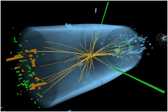 CMS探测器于2012年记录的一次事件。图片来源:欧洲核子研究中心
