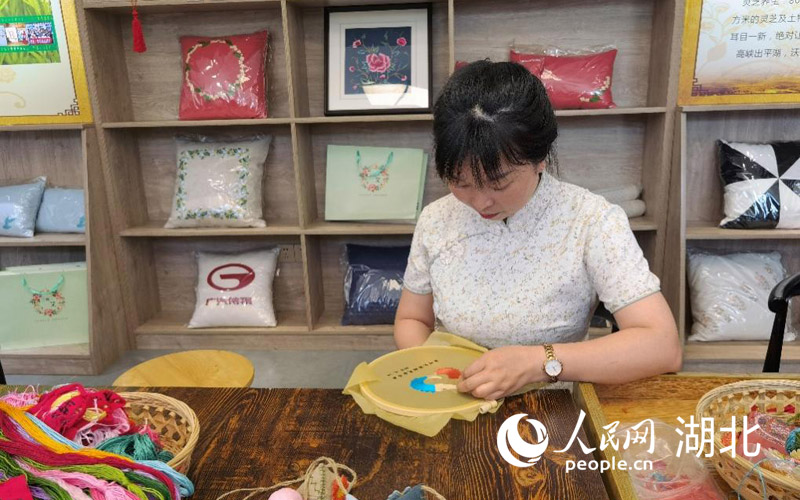 绣娘运用“牵花绣”制作绣品。人民网 张隽摄