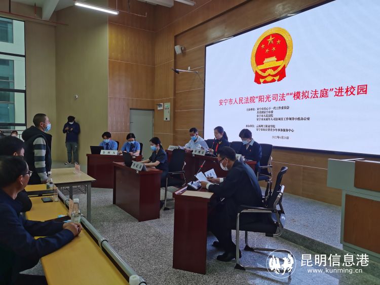 昆明信息港讯 记者周智宇 实习记者刘欣彤 近日,安宁市人民法院“少年法庭”刑事审判团队到云南理工职业学院开展法治宣传教育活动。以案例为出发点,对同学们进行法治宣传教育。