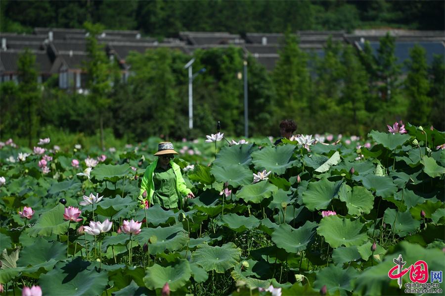 荷花基地是进入新邵白水洞景区的首道“关卡”,游客们沿着荷田中的游步道迈步,再一一“打卡”各色景点,体验白水洞景区特有美景、采摘、美食,享受一道色形味香俱全的旅游“盛宴”。