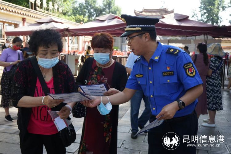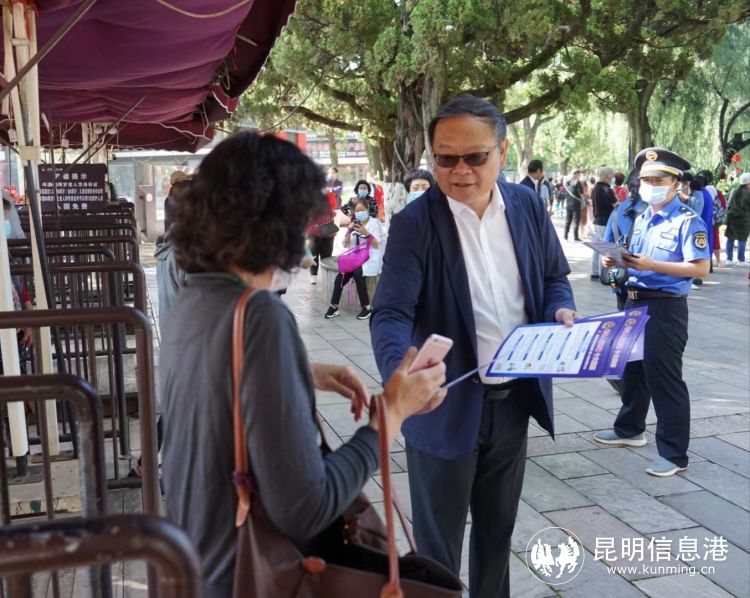 昆明信息港讯 记者杨雁 7月6日,昆明市城管局陈剑平局长带队,市城管局机关、市综合行政执法支队、公园等工作人员来到大观公园,开展打击整治养老诈骗专项行动进公园宣传活动,现场为群众发放1500余份宣传材料。