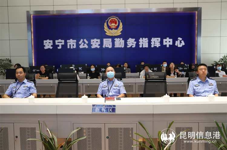媒体记者先后观摩了安宁市勤务指挥中心、螳川驿站,观看了“全国优秀公安局”宣传片。