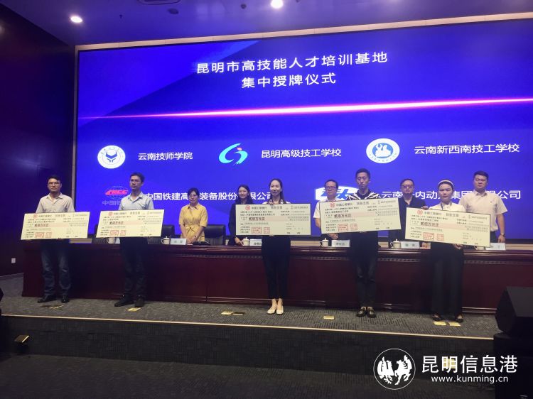 昆明信息港讯 记者上官艳君 7月8日,昆明市举行高技能人才培训基地集中授牌仪式,云南技师学院、昆明高级技工学校、云南新西南技工学校、中国铁建高新装备股份有限公司、云南云内动力集团有限公司5家单位被认定为“昆明市高技能人才培训基地”并获得授牌。