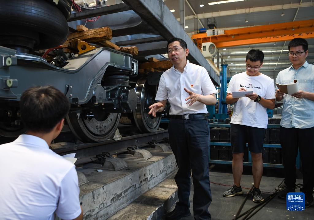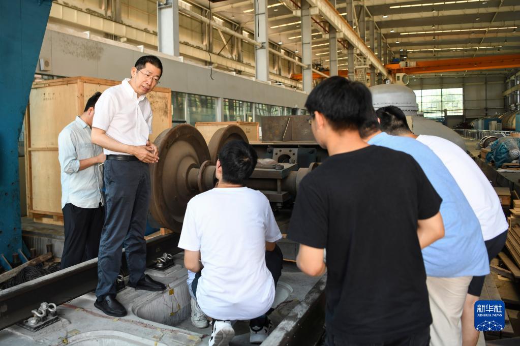 6月29日,在西南交通大学牵引动力国家重点实验室,翟婉明(左二)在指导学生。 新华社记者 王曦 摄