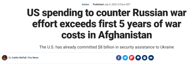 据美国福克斯新闻网9日报道,俄乌爆发军事冲突以来,拜登政府已为基辅提供80亿美元的安全援助,超过美国在阿富汗战争前5年的74亿美元花销。