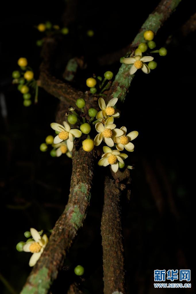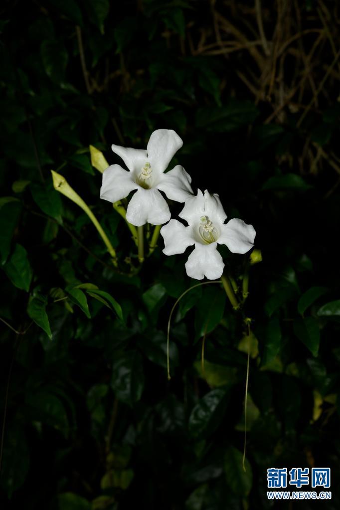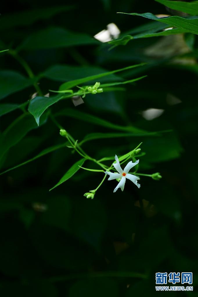 夜花。常于夜间开放,偶见有少量花朵在次日上午9点还未落,花朵洁白有香气,小巧玲珑。(资料图)。新华网发(莫海波/摄)