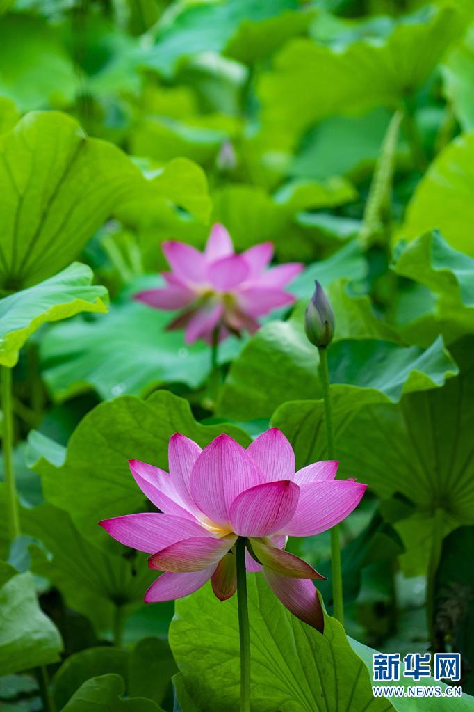 近日,在云南省昆明市大观公园、嵩明县嵩阳街道普渡社区果马河畔等地,荷花相继绽放,构成一幅生态美景。(新华网发 郑益 刘文贵 /摄)