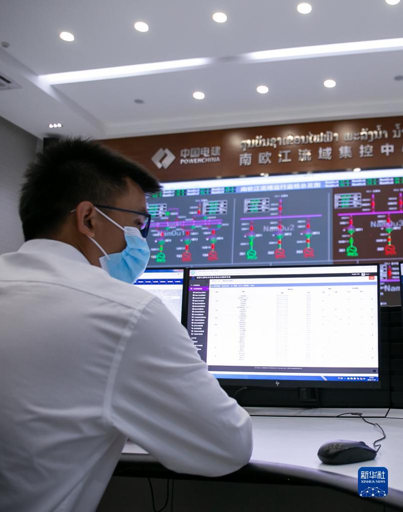 7月13日,工作人员在老挝琅勃拉邦南欧江电力运维管理中心工作。 新华社发(凯乔 摄)