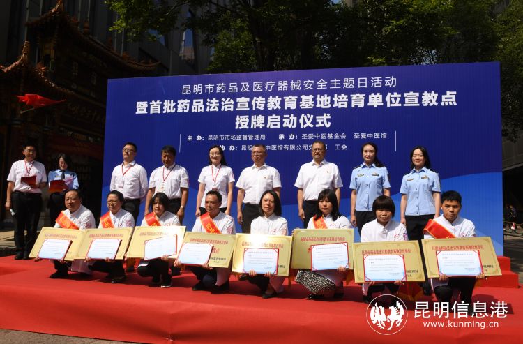 昆明信息港讯 记者杨雨 2022年7月15日上午,昆明市市场监督管理局主办的“昆明市药品及医疗器械安全主题日活动暨首批药品法治宣传教育基地培育单位宣教点授牌”仪式在昆明圣爱中医馆举行。