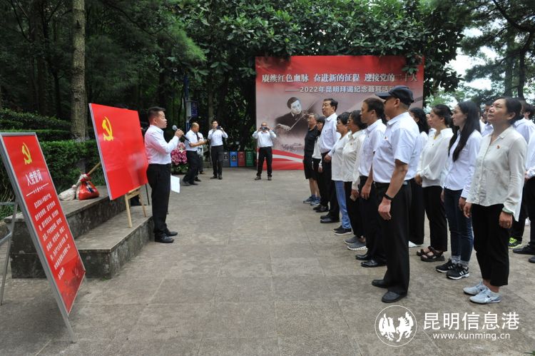 此次活动由昆明市聂耳研究会、中共昆明西山区委宣传部主办,昆明市聂耳墓文物管理所、昆明聂耳故居纪念馆协办,西山风景区管理局支持。现场,全体人员在聂耳墓前敬献花篮、鲜花。