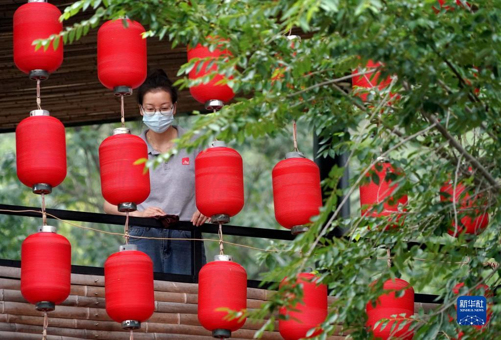 工作人员在“洛阳三彩陶艺村”打扫卫生(7月13日摄)。新华社记者 李安 摄