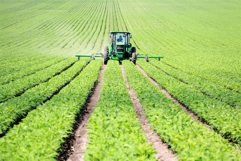 黑龙江北大荒农垦集团五大连池农场有限公司工作人员进行大豆中耕除草作业(2022年6月29日摄)。新华社发(陆文祥 摄)