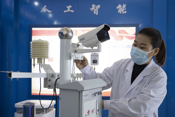 在哈尔滨中科盈江科技有限公司生产车间,工人在进行产品测试。这家公司研发制造的传感器已经应用于大气环保、生态农业、医疗健康、智慧出行等多个领域,以数字化手段推动传统产业升级(2022年4月24日摄)。新华社记者 张涛 摄