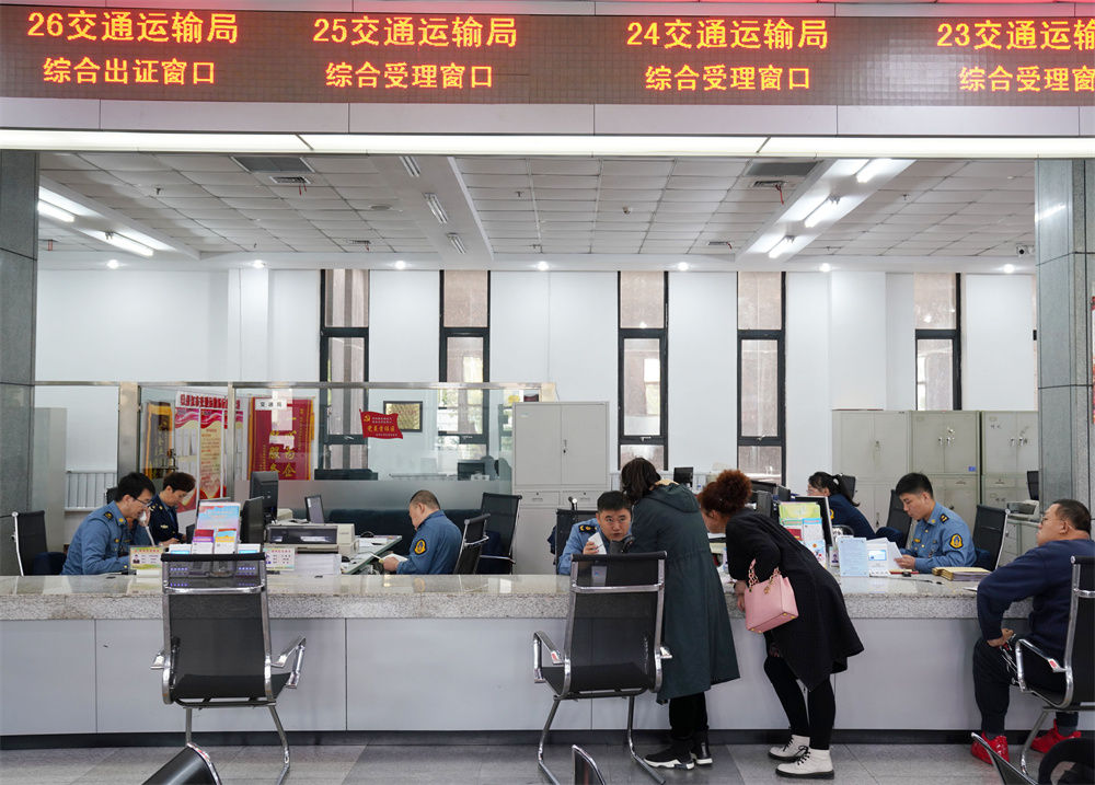 在黑龙江牡丹江市营商环境建设监督局办事大厅,市民在审批窗口办理手续(2019年9月18日摄)。新华社记者 王建威 摄
