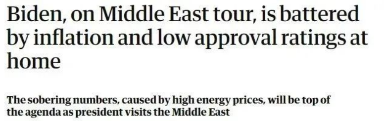 在面对高通胀率和低支持率双重打击的背景下,尽管拜登高调宣称此访旨在开启美国与中东关系“新篇章”,但“找油”被认为是他最现实的目的。