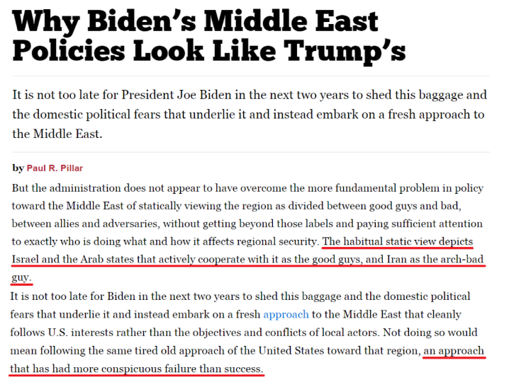 美国《国家利益》杂志发文批评说,拜登政府很大程度上延续了特朗普失败的对伊朗“极限施压”政策。这表明它未能克服美国中东政策中一个根本问题,即把中东国家简单地划分为“好人和坏人、盟友和对手”。