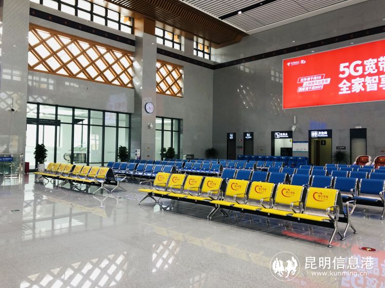 保山站值班站长鲁建丽介绍,保山站位于保山市隆阳区,车站为三等站。保山站候车大厅装修中采用了民族特色装饰,屋顶运用了棋盘格元素的同时融入了保山少数民族特色,更好地体现了保山风情。车站的建筑面积12000平方米,候车室面积6180平方米,最大可容纳旅客名乘客7700人。在候车室左右两边设置有候车座椅1852个,其中按摩座椅有360个,为旅客提供舒适候车环境。车站在进站口设置有检票闸机吧台,人工检票通道有两个,车站采用的是验检合一模式,即在检票进站的同时同步完成人脸核验。车站设有安检仪三台,在安检的同时,可以同步完成进站旅客的体温检测,也已经做好了疫情防控的各项准备工作。 在车站有一个售票综合服务中心,设有五个人,有五个售票窗口,在售票窗口提供的是售票、退票、改签、以及一些资讯等服务。站前广场附近有公交车等城市交通接驳,方便乘客出站后快速转乘。