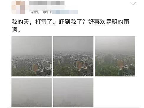 19日下午4点多,滂沱大雨突袭昆明,一声“炸雷”在窗边响起。