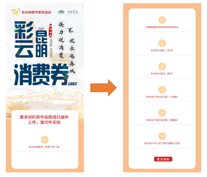 购车消费者通过承接本活动的第三方机构申报系统(云闪付App),在阅读并同意“昆明购车补贴线上”申领规则后,按要求清晰、完整、准确填报相关信息和提交申报资料。
