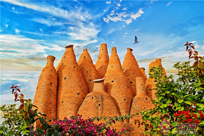 最美的花海里,艺术家罗旭没用一根钢筋、一颗钉子,在东风韵小镇里单用本地30万块红砖建起了一座座城堡。万花筒艺术馆是其中的代表性建筑,一眼望去,整个建筑外形如一堆红酒瓶,别具特色又充满美感。艺术馆以砖为筒、以窗为镜,随着四季阳光照射角度不同,馆内的光线也会随之变化出不同的光影之美。