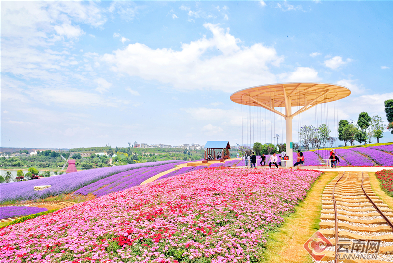 盛开的花田间,掩映着一条米轨,用以纪念滇越铁路为东风农场带来的法国葡萄,米轨之上镌刻着用自世界上不同语言表达的“我爱你”,成为这片大地对游人的告白。