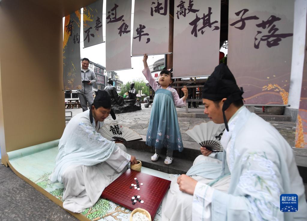 市民身着传统服饰参加在浙江省建德市寿昌古镇举办的传统文化活动(2022年4月30日摄)。新华社记者 徐昱/摄