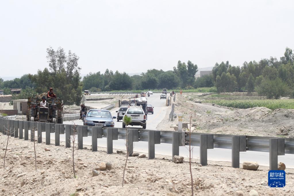 7月13日,车辆行驶在中国企业承建的阿富汗首都喀布尔至阿东部楠格哈尔省首府贾拉拉巴德的公路上。新华社发(艾马勒·查希尔摄)
