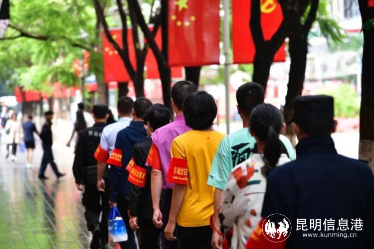 在昆明市公安局党委的统一部署下,在《春城“红袖标”治安志愿者动员令》的感召下,在各级各部门的联动支持下,广大春城“红袖标”治安志愿者闻令而动、积极响应,戴上红袖标、挂上标识牌,走上街头、深入家中,积极配合公安机关开展社会治安巡逻防范、交通疏导、隐患排查、反诈宣传等工作。