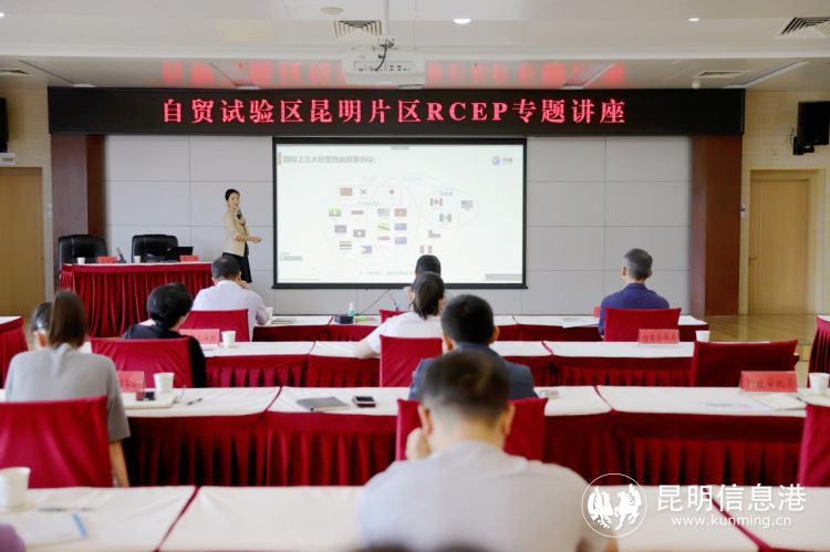 昆明信息港讯 记者张龙英 7月21日,中国(云南)自贸试验区昆明片区(昆明经开区)邀请第三方合作伙伴为辖区各职能部门作RCEP专题讲座。区党工委副书记何云虹,党工委委员、管委会副主任吴智峰、王峥出席此次活动。