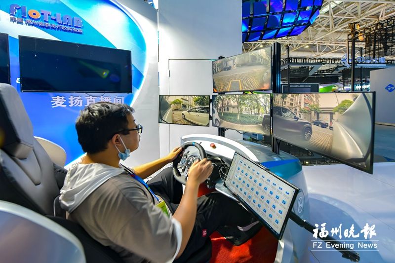 在国家物联网产业示范基地——中国·马尾展区,记者体验了一把远程驾驶。