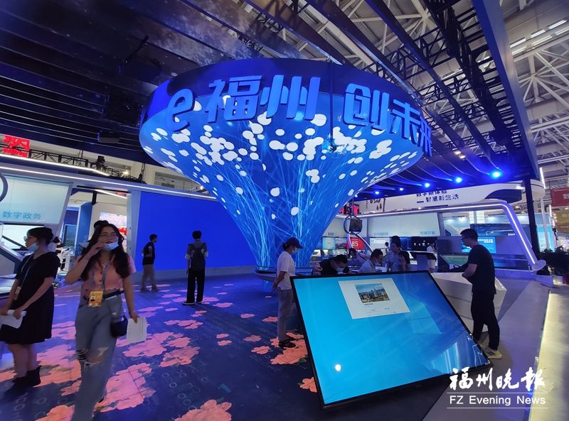 在福州展区,这一印象更是凸显。和往届相比,福州展区的科技感大幅度提升。以深蓝色为主基调的展区中央,一个由先进LED显示设备做成的“榕树”流光溢彩,“树顶”上“e福州 创未来”的字样,生动诠释福州展区的主题。主办方表示,预计开展后,福州展区将会成为观众的一个必选“打卡地”。