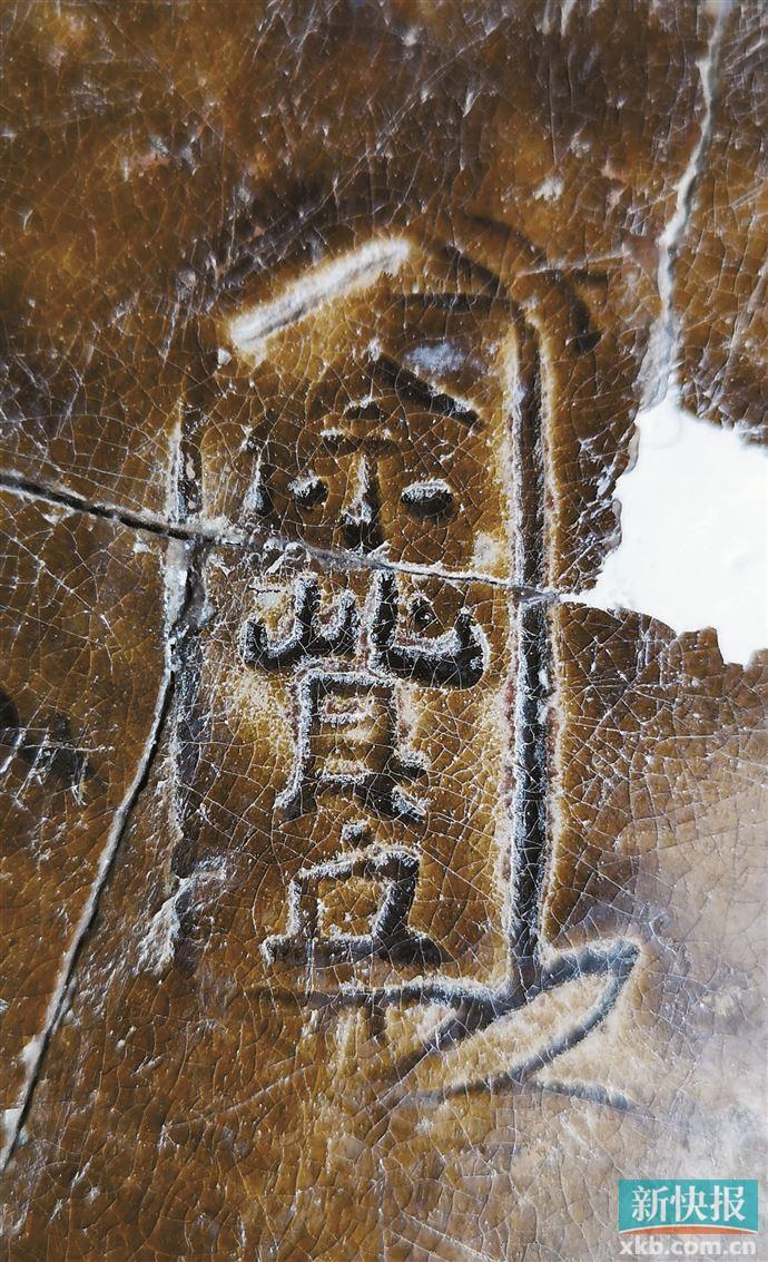 2021年8月13日在文头岭窑址采集的“何深郡”印文酱釉陶罐残片