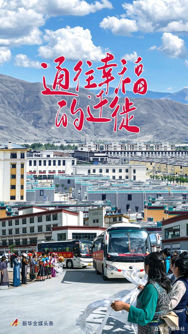 一阵阵激昂的藏戏鼓声、一声声“欢迎到家”的美好祝福,当地群众手举象征五谷丰登的“切玛盒”,逐一献上哈达,迎接新邻居。