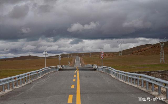 这是双湖县境内的公路和电网(7月14日摄)。新华社记者 晋美多吉 摄
