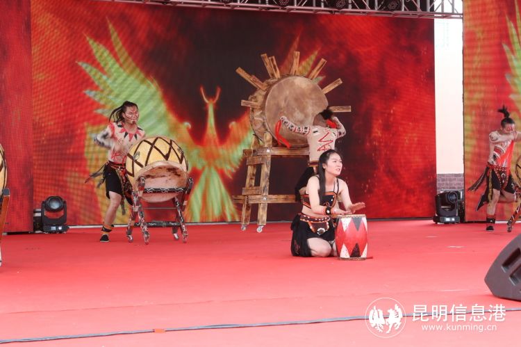 下午2点,活动在气势磅礴的开场舞《太阳神鼓》中启动,精彩纷呈的民族舞蹈、诗歌朗诵、旗袍走秀、歌曲太极轮番上演。活动主舞台旁开设了美食街,有特色美食呈贡豌豆粉、炸洋芋,网红小吃提拉米苏。另一旁,瓦猫、刺绣、剪纸、菱角等非遗文化产品展演,民族文化猜灯谜吸引了八方来客。