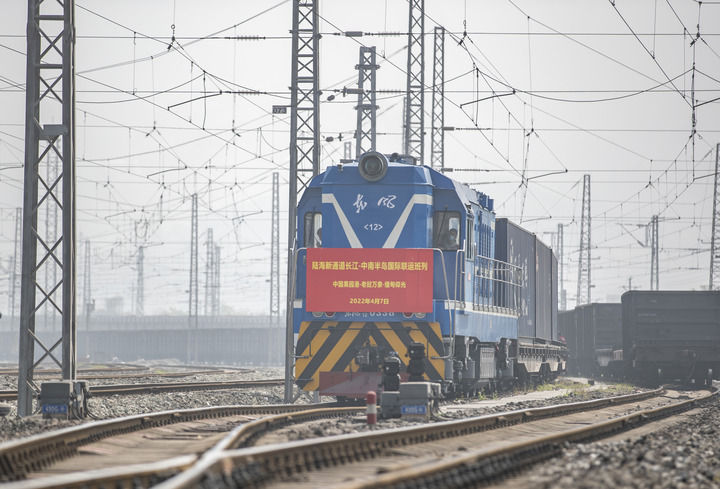 4月7日,长江—中南半岛国际联运班列从重庆果园港发出。新华社记者黄伟摄