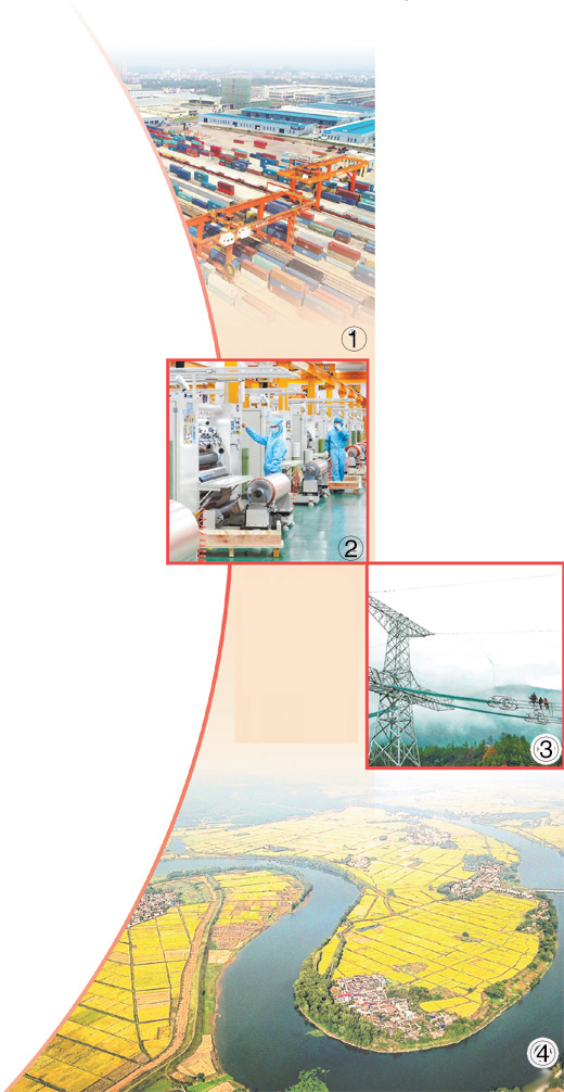 图③:电力工人在国家“西电东送”工程雅湖±800千伏特高压直流输电工程(江西段)中施工。徐 铮/摄