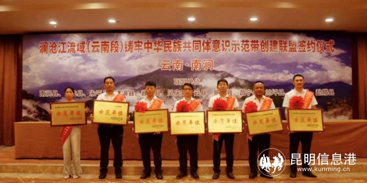 昆明信息港讯 记者合宇聪 通讯员袁玉梅 7月23日,澜沧江流域(云南段)铸牢中华民族共同体意识示范带创建联盟签约仪式在云南省大理州南涧县举行。此次活动由南涧县发起举办,来自澜沧江流域(云南段)的七州市十二县及部分乡镇受邀参加。