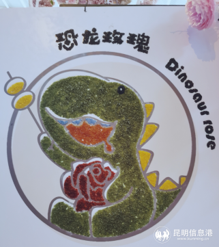 旁边仟磬文创打造的恐龙玫瑰市集,主打的除了玫瑰之外,还有很多有意思的新品:用鲜花做的蜡烛、香皂等不一而足。开展当天,在鲜花装点的展区,开辟出“花之影”打卡区,来自全国各地的专业展商、直播网红纷纷前来打卡拍照。卫夫子、大乔、小乔、摩羯座、白羊座等恐龙玫瑰新品争相斗艳,仟磬文创作为服务商,曾经参加在上海举行的2020中国国际旅游交易会,用一万多枝玫瑰、绣球、紫掌尽情展现着呈贡的风情,一时风头无两。