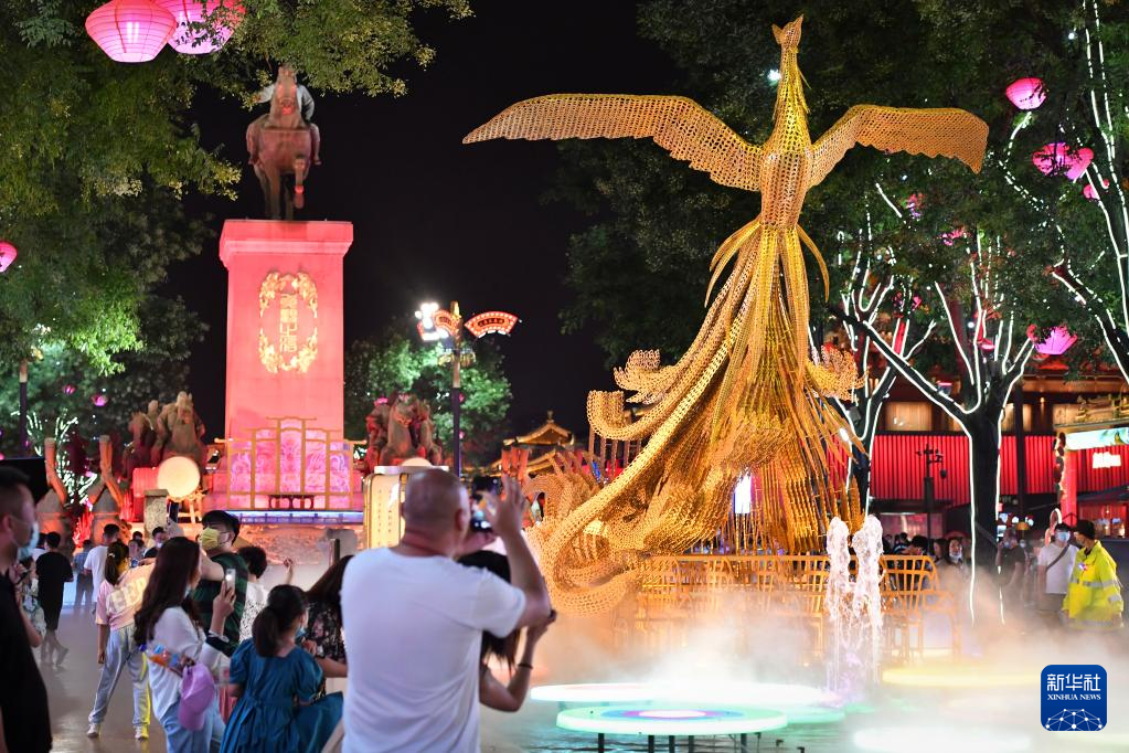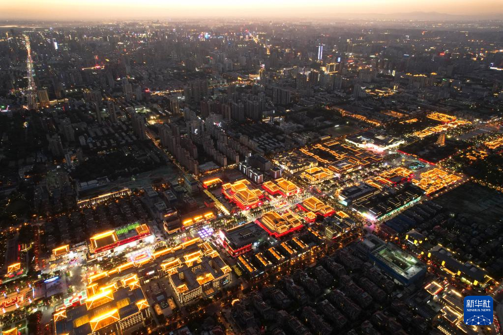 西安大唐不夜城景色(6月14日摄,无人机照片)。