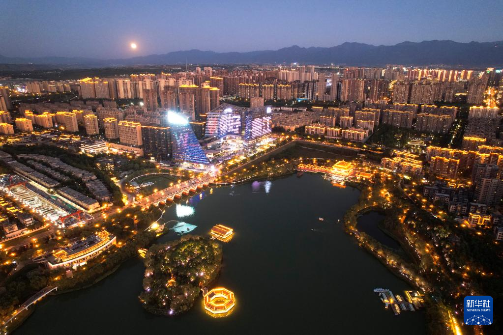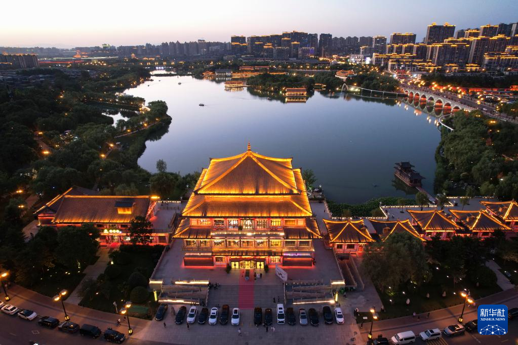 西安曲江新区夜景(2022年6月14日摄,无人机照片)。